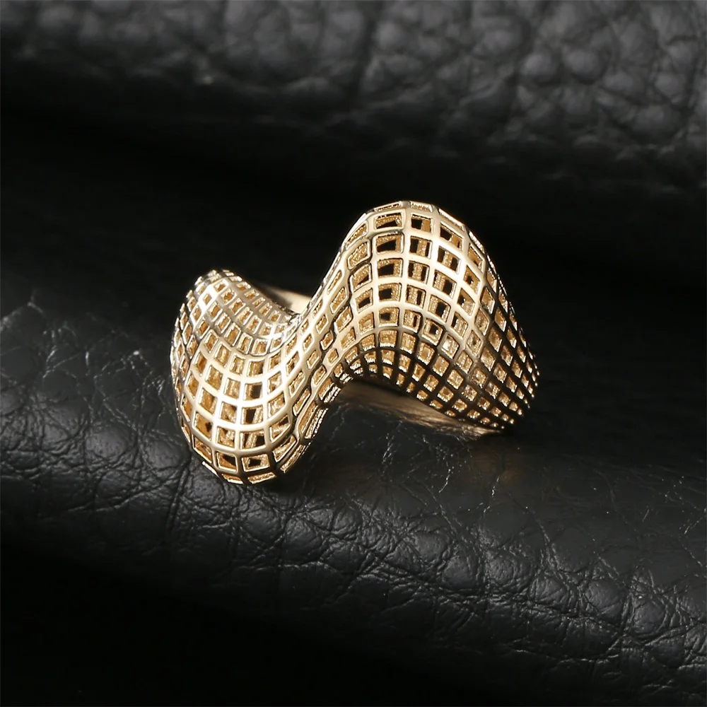 Skup CREMO Złoty Kolor Twist Klasyczne 3D Hollow Pierścionek dla Kobiety Dziewczyny Nieregularna geometria Biżuteria Zesp oacute;ł Bague Najtaniej Ceny